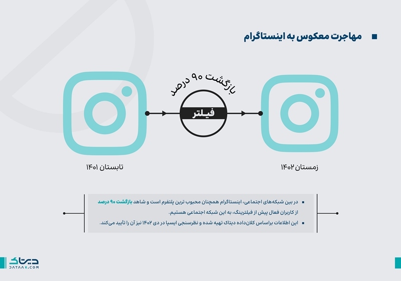 گزارش سالانه دیتاک با عنوان «رفتار ایرانیان در شبکههای اجتماعی در سال ۱۴۰۲» منبع ارزشمندی برای شناخت عمیقتر فضای مجازی ایران است. آمارها و داده های دقیق و به روز ارائه شده در این گزارش به صاحبان مشاغل، فعالان بازاریابی، روابط عمومی، پژوهشگران و… کمک می کند تا تصویر روشنی از رفتار و سلایق کاربران ایرانی در شبکه های اجتماعی داشته باشند.