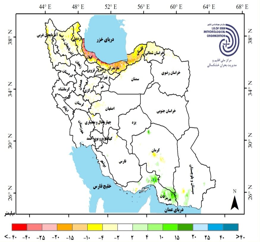 در این بازه زمانی استانهای خراسان رضوی و جنوبی، بوشهر، فارس، کرمان، سیستان و بلوچستان و هرمزگان در بخشهایی از محدوده خود خشکسالی خفیف تا شدید را تجربه کردهاند و استانهای خراسان شمالی، سمنان، گلستان، مازندران، گیلان، اردبیل، آذربایجان شرقی و غربی، تهران، البرز، قزوین و زنجان در بخشهایی از منطقه خود خشکسالی خفیف تا شدید را تجربه کردهاند.