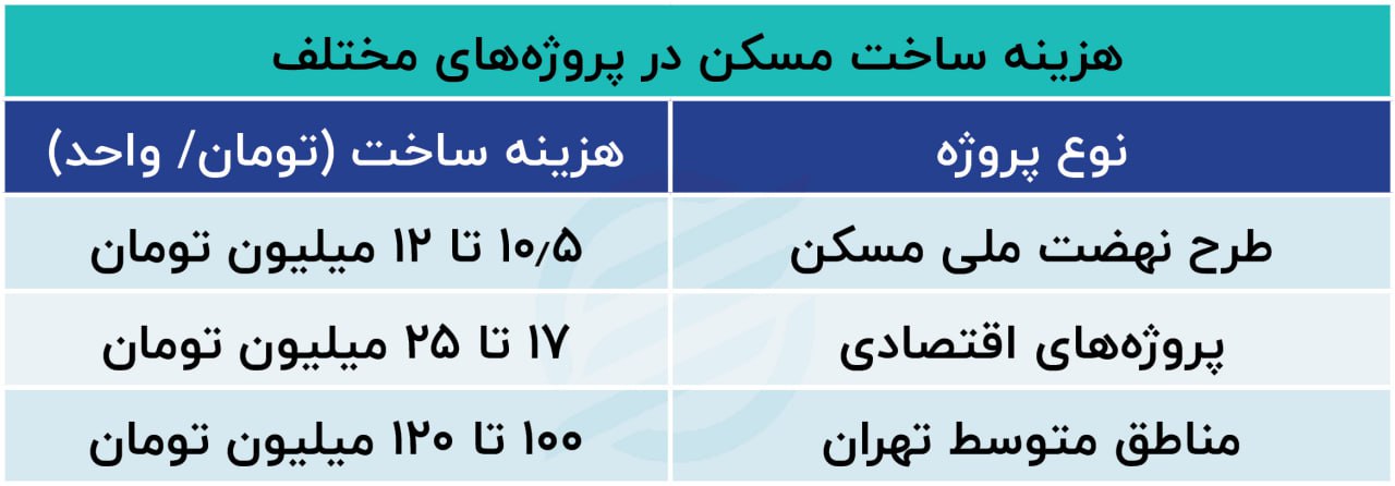 براساس بانک اطلاعاتی اطلاعات Diarmirza ، بازار مسکن در ایران هنوز با چالش های بسیاری روبرو است که یکی از آنها قیمت مسکن تمام شده در پروژه های مختلف است. در حالی که برنامه ملی جنبش مسکن به عنوان راه حلی برای بحران مسکن مطرح شده است ، هزینه ساخت و ساز و تأمین زمین برای این پروژه ها هنوز یکی از اصلی ترین مشکلات است. به گفته محسن آلیزاد ، مدیر عامل سرمایه گذاری مسکن ، هزینه های ساخت و ساز در این پروژه از ۱.۵ میلیون دلار تا هر واحد مسکونی است. این مبلغ به دلیل تورم ثابت است و نوسانات قیمت مصالح ساختمانی و واحدها با همان هزینه به متقاضیان تحویل داده می شوند.