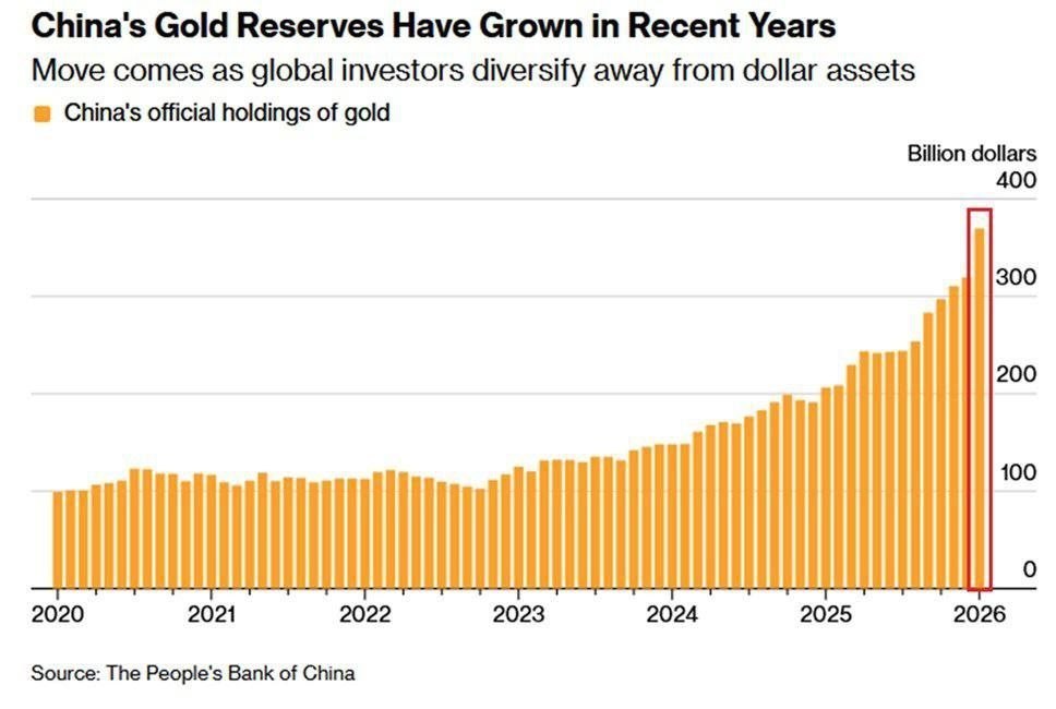 همانطور که از نمودار روند ذخایر طلای چین در سال های اخیر (۲۰۲۰ تا ۲۰۲۶) مشاهده می شود، افزایش بسیار شدیدی در ارزش ذخایر طلای این کشور نمایان شده است. این اقدام استراتژیک در زمانی انجام می شود که سرمایه گذاران جهانی و اقتصادهای بزرگ به دنبال تنوع بخشیدن به دارایی های خود و توقف اتکای صرف به دارایی های دلاری هستند.