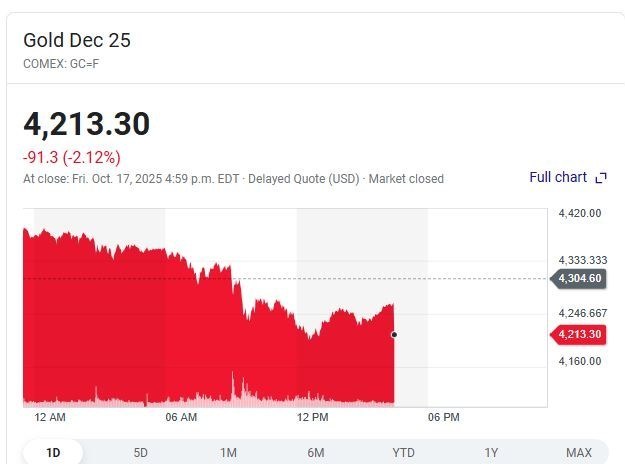 قیمت هر اونس طلا با ۳ درصد کاهش از ۴۳۰۰ دلار به حدود ۴۲۰۰ دلار رسید و به پایین ترین سطح خود در هفته های اخیر رسید.