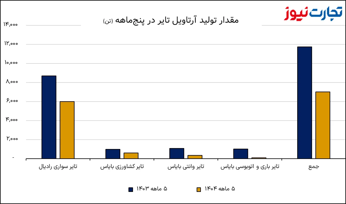 عملکرد پنج ماهه تایر Artawil نشان می دهد که این شرکت کاهش شدید تولید و فروش در کلیه محصولات دارد. در حالی که گردش مالی کلی شرکت با بیش از ۵۰ ٪ ، فروش فقط ۲ ٪ کاهش یافته است ، دلیل اصلی پرش قیمت به دلیل تورم و رشد هزینه است. این فرایند نشان می دهد که تایر Artaill برای حفظ صورتهای مالی سالانه بیشتر به تورم وابسته است.