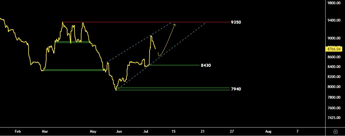 به نظر می رسد شاخص صنعت بانکداری در حال اصلاح جزئی باشد و این اصلاح در نهایت می تواند منفی ۴ درصد باشد و با حفظ حمایت ۸۴۳۰ واحدی به هدف اول یعنی ۹۳۵۰ واحد برسد. در غیر این صورت در صورت از بین رفتن پشتیبانی ۹۳۵۰ واحدی کف ۷۹۴۰ واحدی موجود است. حمایت ۸۴۳۰ واحد متشکل از حمایت پویا متعلق به کانال موازی و ساپورت استاتیکی جزئی است و در کوتاه مدت از اعتبار نزدیک به بالایی برخوردار است که می توان با پیگیری از وضعیت فعلی شاخص و واکنش شاخص به این موضوع مطلع شد. مرحله .