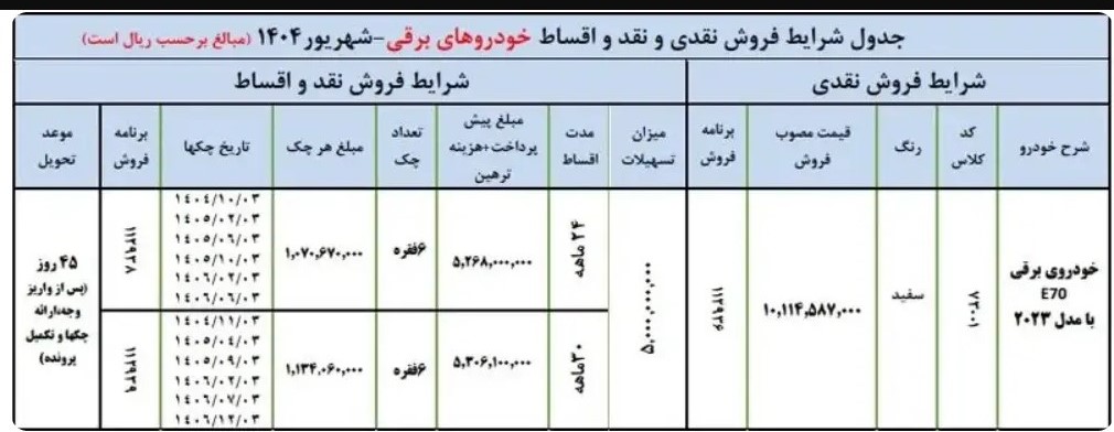 ایران شرایط فروش اقساطی Dongfeng E70 اعلام شده ماشینی که ارزانترین سدان برقی بازار ایران معرفی شده و قرار است وارد ناوگان تاکسی تهران شود. این هزینه واحد تا ۵ کیلومتر هزینه کامل دارد و به دلیل کم هزینه شارژ ، گزینه اقتصادی برای تاکسی ها است. فروش این ماشین از شهریور ۱۴۰۱۴ شروع شده و تاکسی ها می توانند استفاده کنند بررسی ماهی بنفش آن را با قسط خریداری کنید. جزئیات شرایط فروش ، قیمت قطعی و ثبت نام در این گزارش گنجانده شده است.