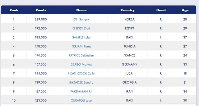 رده بندی جدید بازیکنان ایران به شرح زیر است: (اعداد داخل پرانتز رتبه قبلی بازیکنان است.)