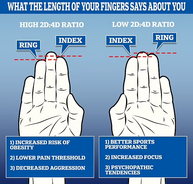 محققان نسبت 2D:4D، یعنی رابطه بین انگشت اشاره و انگشت حلقه را بررسی کرده اند.