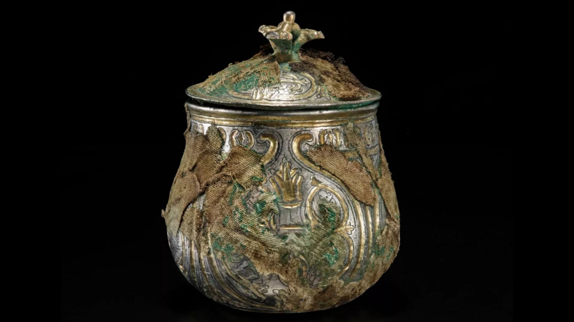نمای بیرونی این ظرف نقره ای در ابتدا تنها از طریق اسکن اشعه ایکس قابل مشاهده بود، زیرا مسئولان موزه نمی خواستند به الیاف نگهدارنده آن آسیب برسانند.