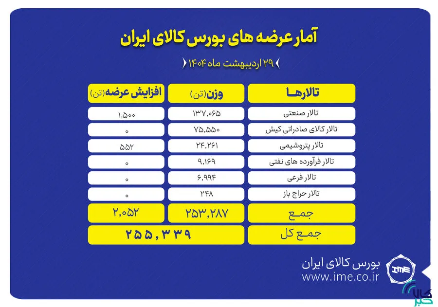 عرضه ۲۵۵ هزار تن محصول در بورس کالا – افق میهن