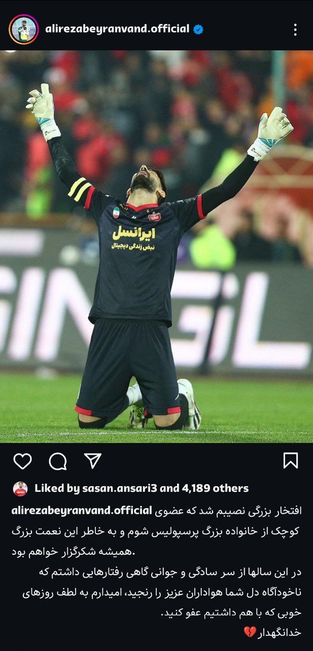 بیرانوند در این پست نوشت: