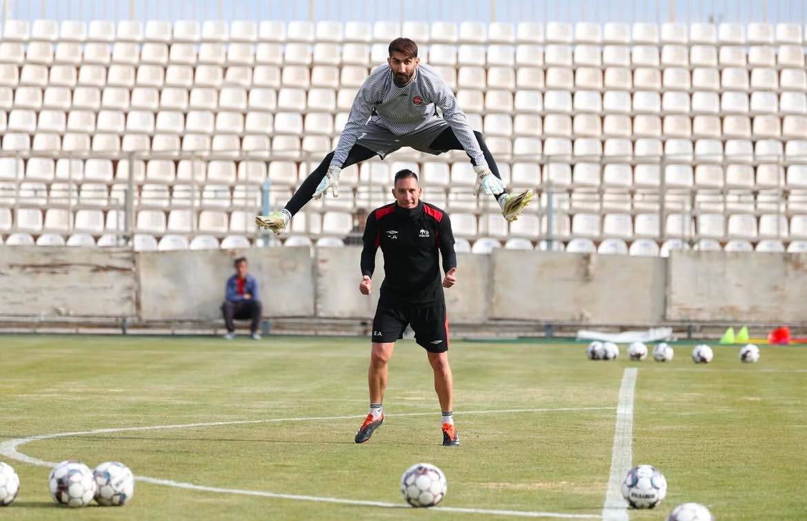 در این تصویر بیرانوند پرش از ارتفاع انجام داده و از روی مربی دروازه بان تراکتور پریده است.