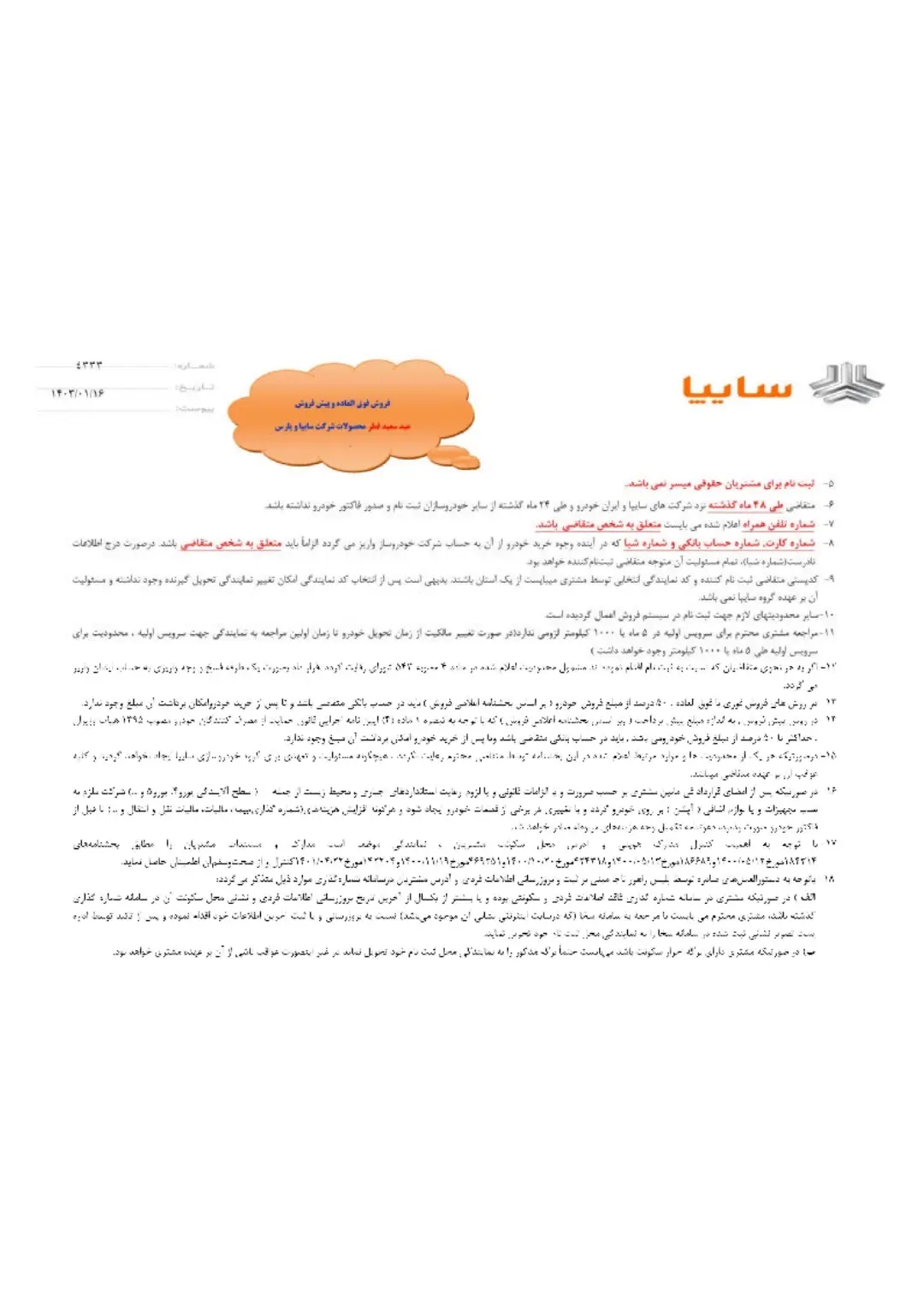 با توجه به پیام شما: فروش و پیش فروش ویژه محصولات سایپا و پارس خودرو ویژه عید سعید فطر برای متقاضیان ثابت از ساعت ۱۱ صبح یکشنبه ۲۸ فروردین ماه شروع می شود.
