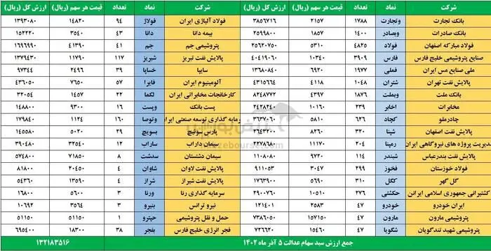 ارزش سهام عدالت چقدر بود؟