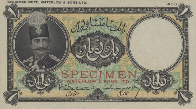 اولین اسکناس های سلطنتی بانک در انگلیس منتشر شد و در ایران توزیع شد. حکم بانک امپریال ایران ، شیر و خورشید و تصویر ناصر الدین شاه منتشر و توزیع شد. با گسترش علم در این مدت ، برخی از سوء استفاده کنندگان آن را جعلی می کنند ، به طوری که Royal Bank برای کنترل این وضعیت ، دومین اسکناس خود را به ایران منتشر و ارسال کرد. بانک سلطنتی این اسکناس ها را با شیر و خورشید توزیع کرد.