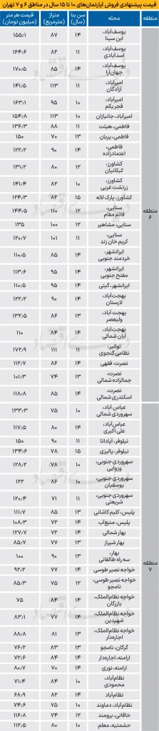متوسط ”قیمت پیشنهادی” به سطح آپارتمان های میانی در دو منطقه ۱ و ۲ از تهران به ۱.۵ میلیون تومن در هر متر مربع رسیده است.