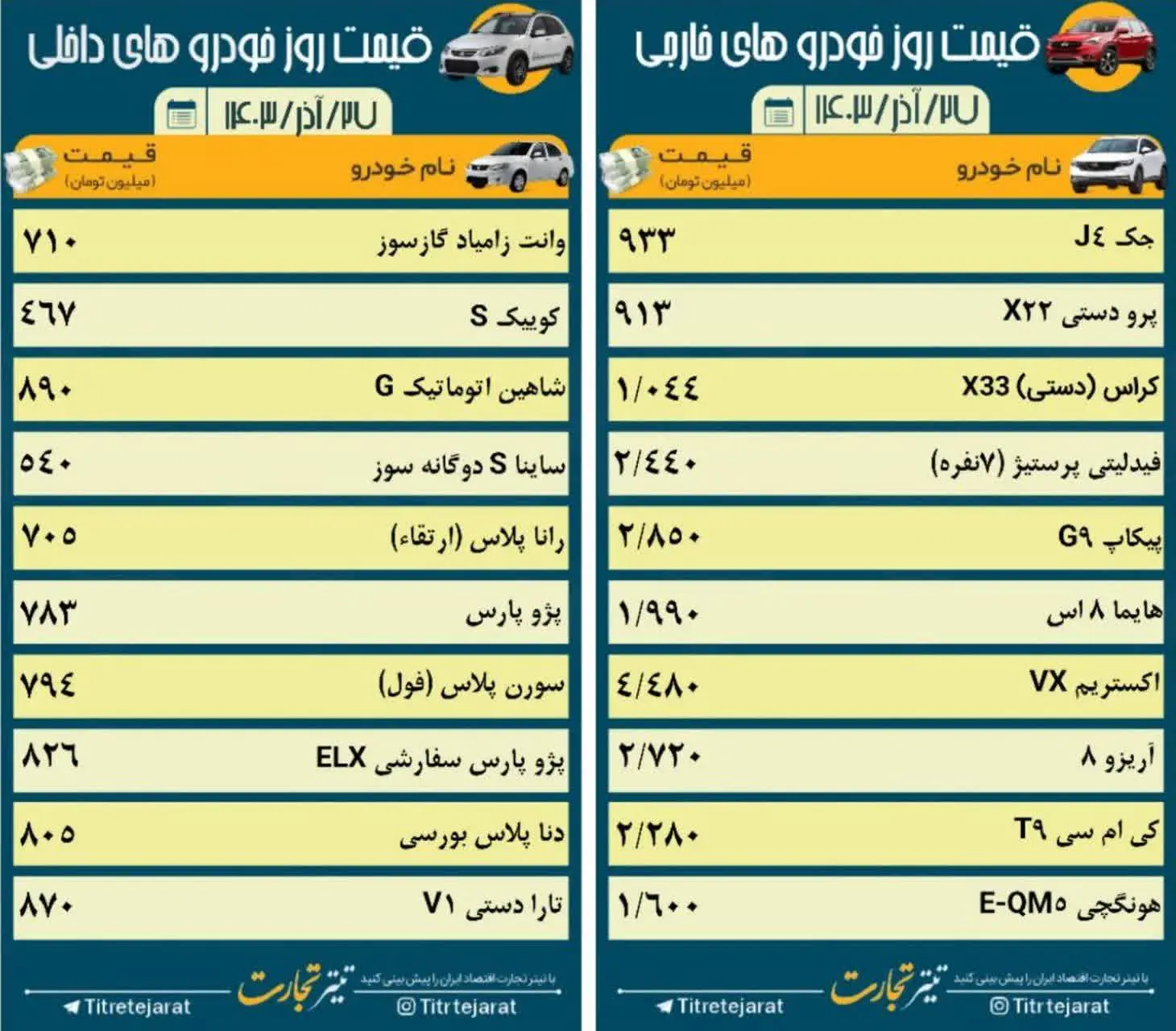 قیمت خودرو امروز 27 آذر ماه 1403 / ریزش قیمت خودرو آغاز شد