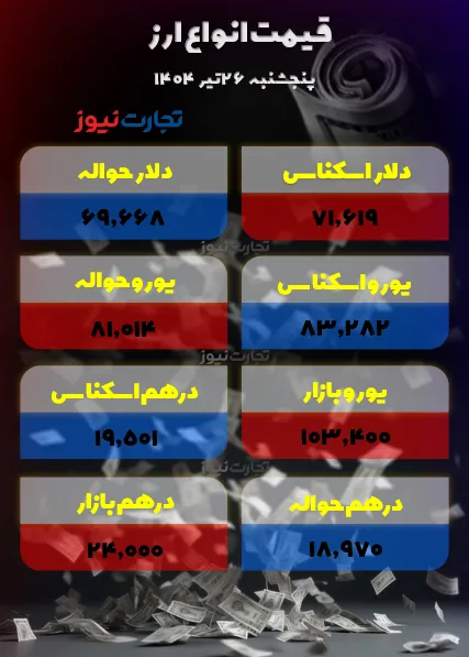 قیمت دلار امروز پنجشنبه 26 تیر 1404 / سایه مکانیسم ماشه بر سر دلار – افق میهن