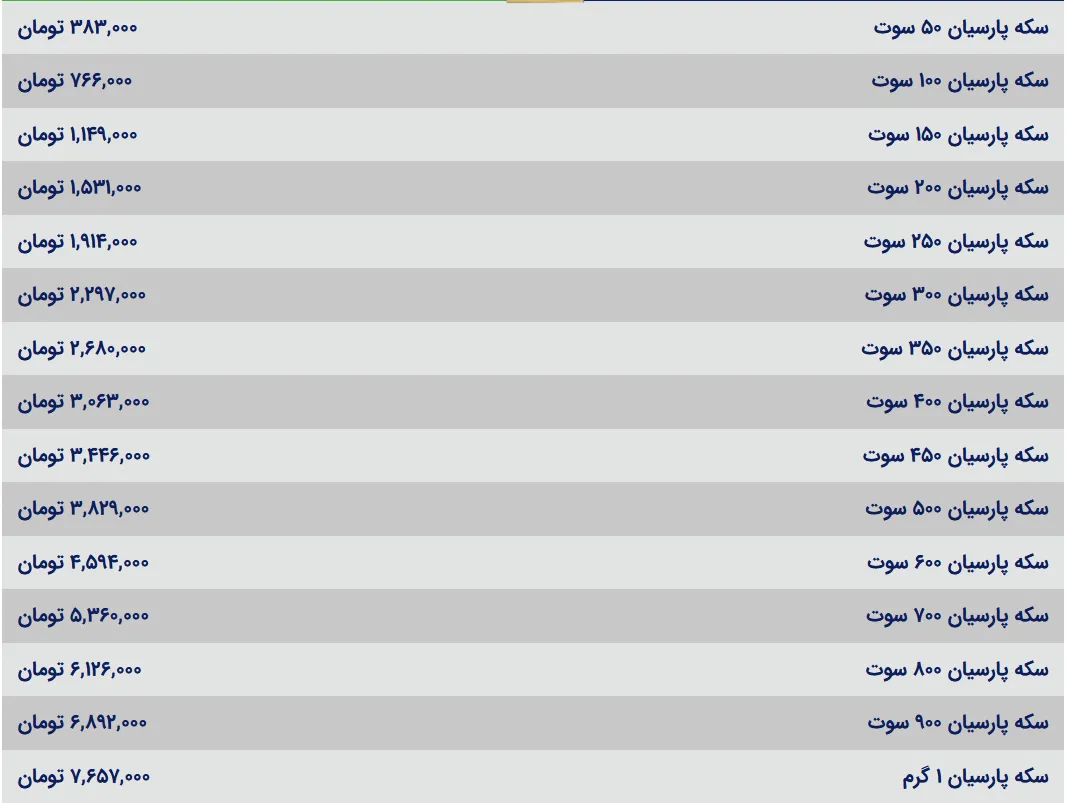 قیمت سکه پارسیان امروز سه شنبه ۱۴ مرداد ۱۴۰۴