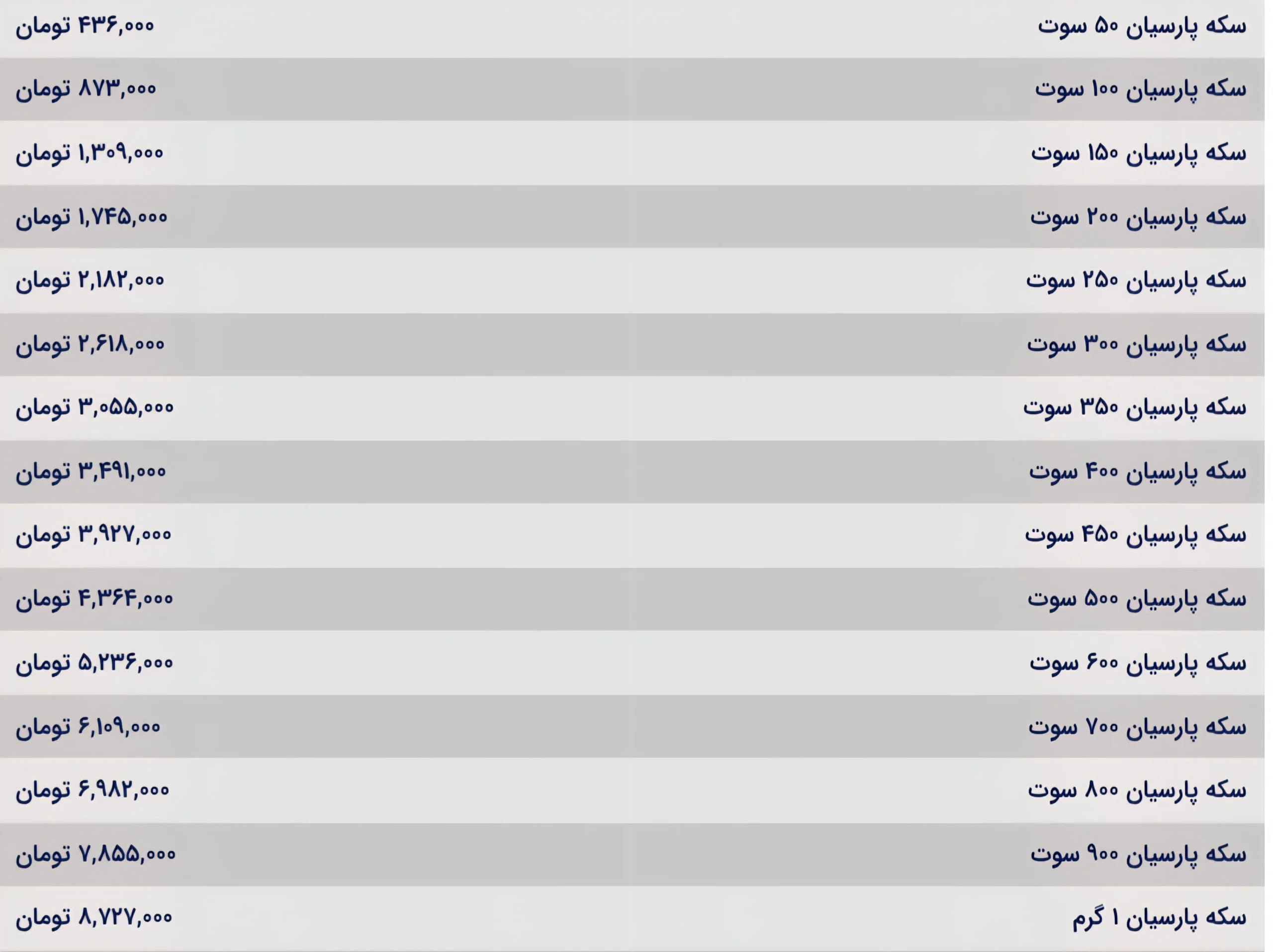 قیمت سکه پارسیان امروز سه شنبه ۱۸ شهریور ۱۴۰۴