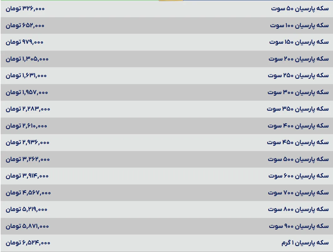 قیمت سکه پارسیان امروز سه شنبه ۲۰ خرداد ۱۴۰۴ – افق میهن