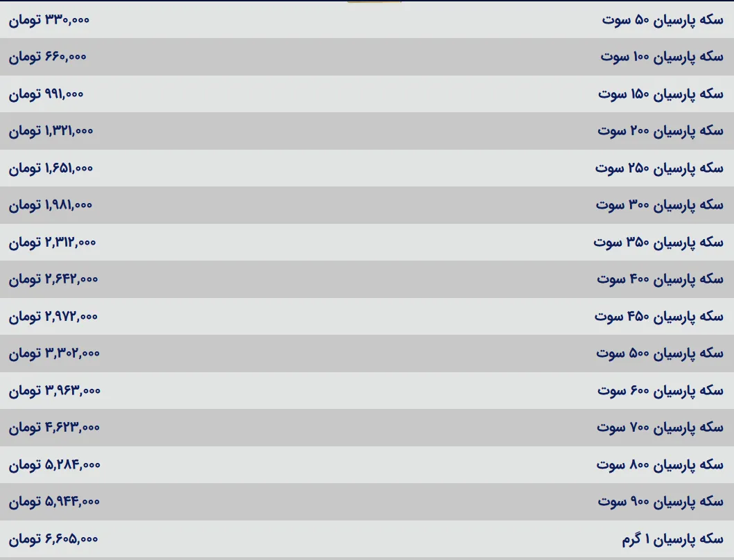 قیمت سکه پارسیان امروز سه شنبه ۲۳ اردیبهشت ۱۴۰۴ – افق میهن