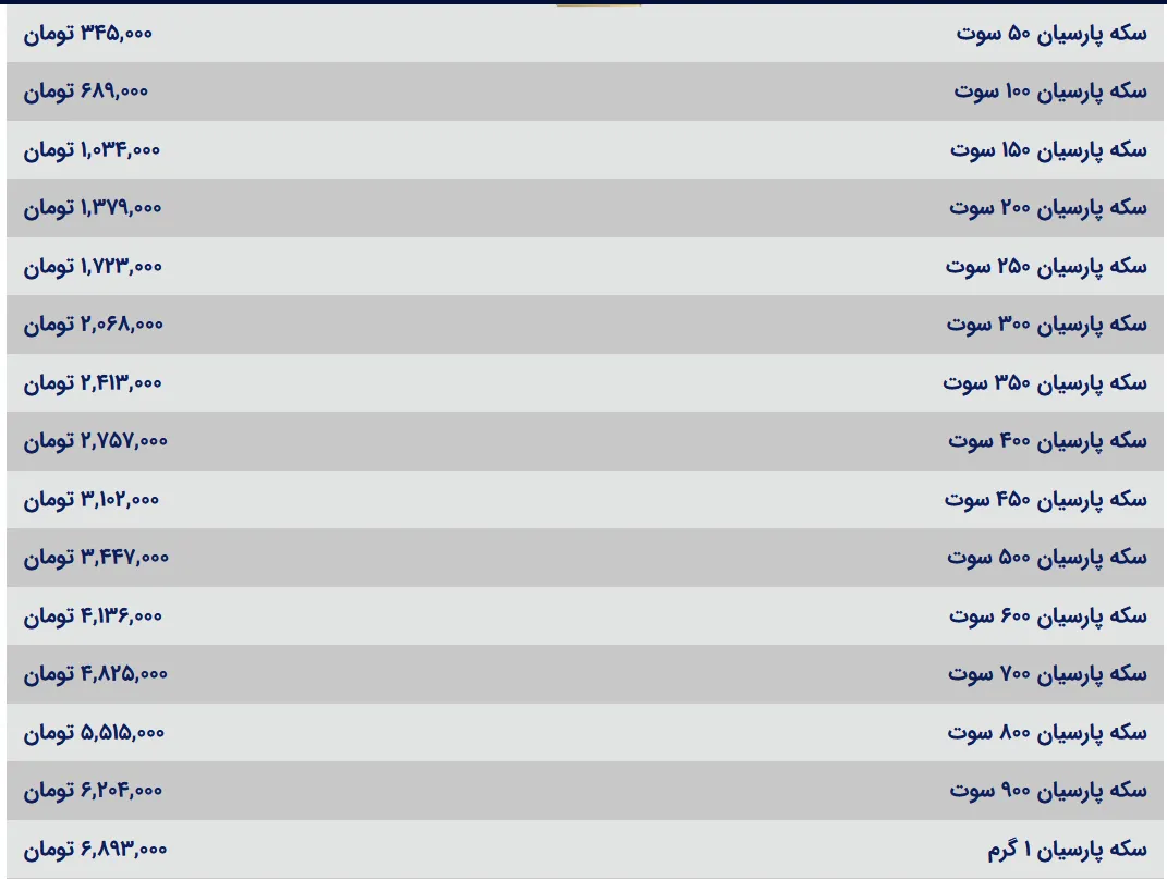 قیمت سکه پارسیان امروز سه شنبه ۲۶ فروردین ۱۴۰۴ – افق میهن