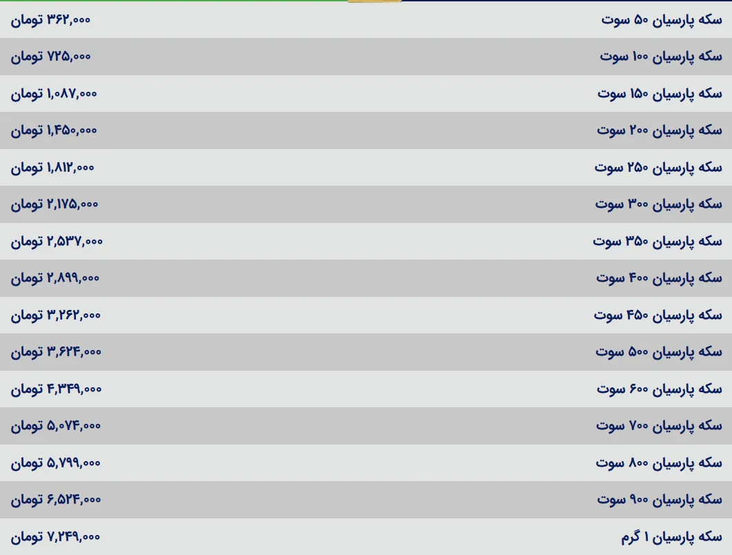 قیمت سکه پارسیان امروز شنبه ۱۱ مرداد ۱۴۰۴