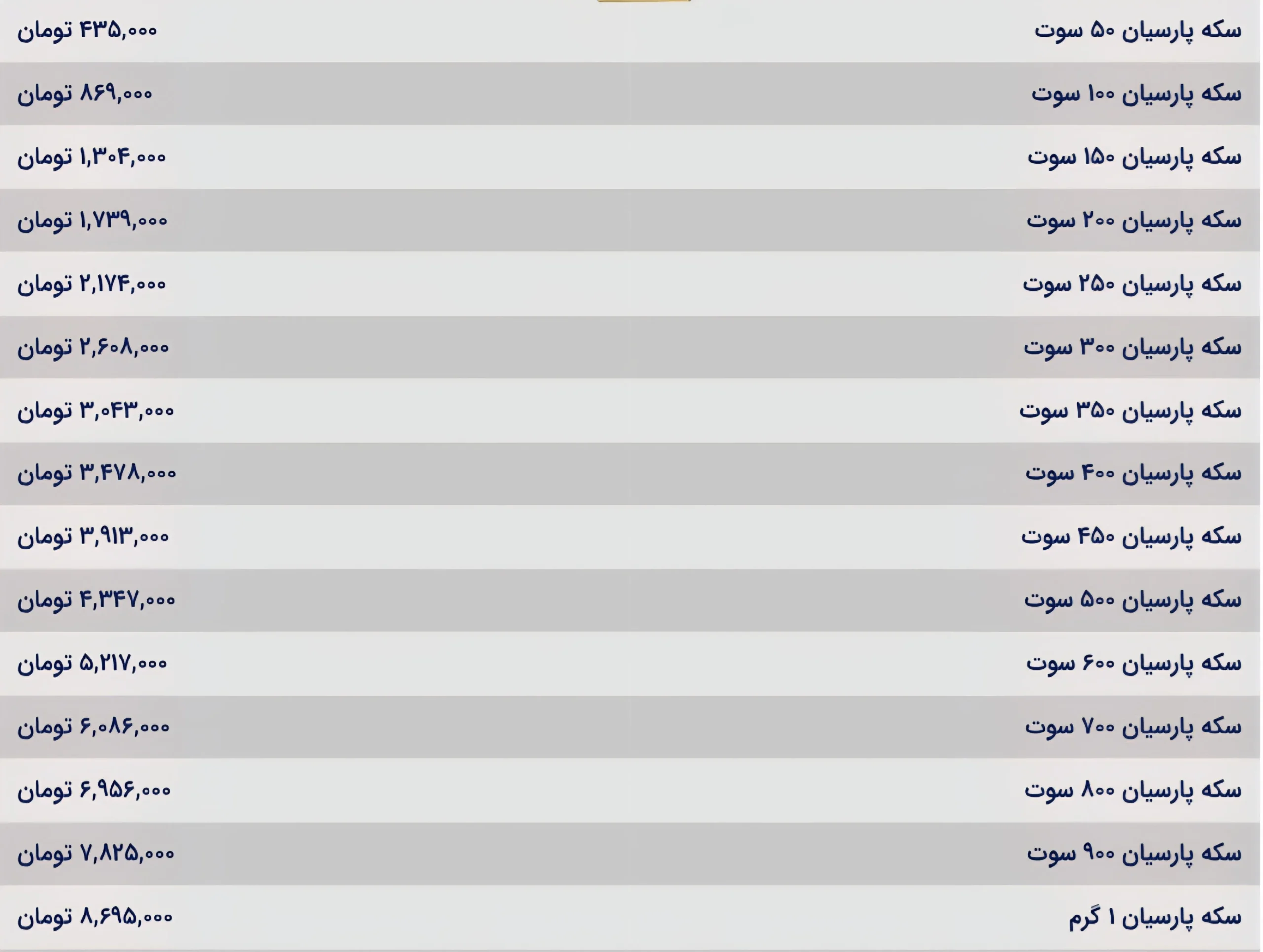 قیمت سکه پارسیان امروز چهارشنبه ۱۲ شهریور ۱۴۰۴