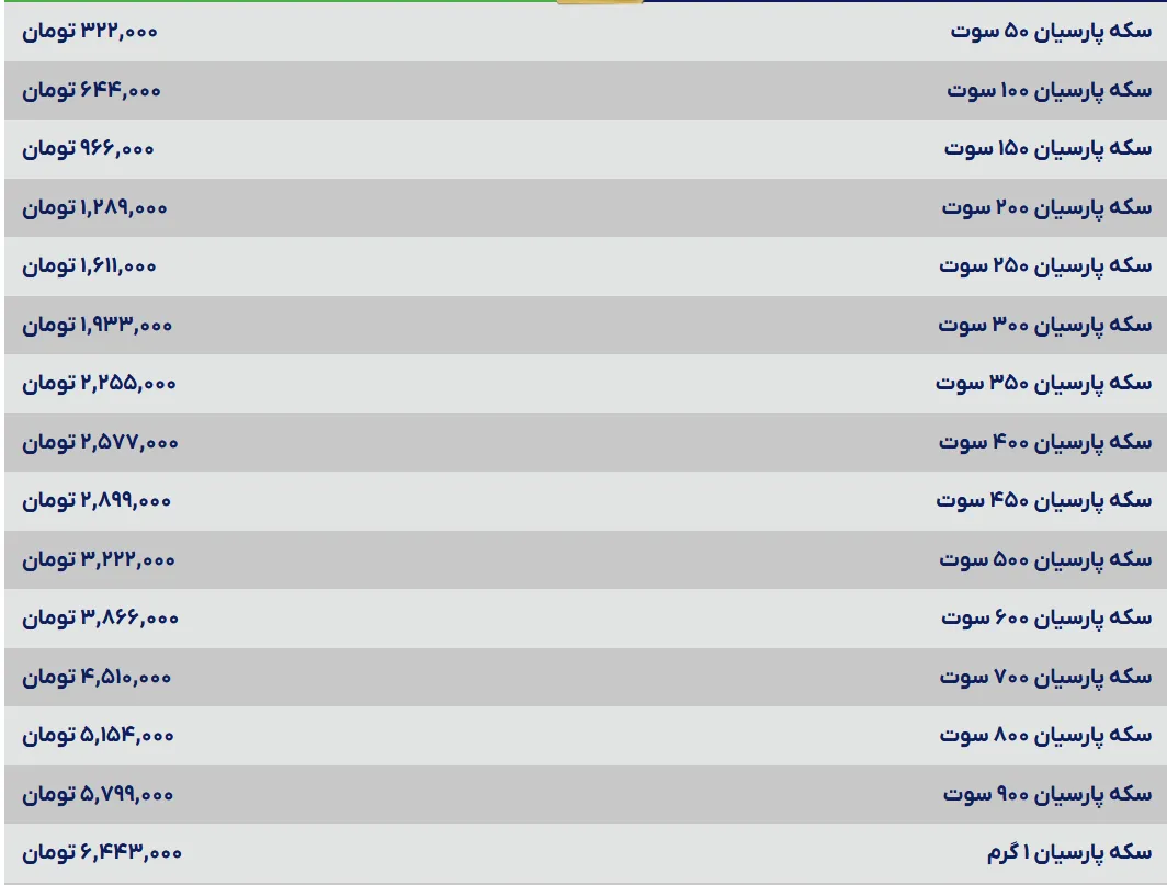 قیمت سکه پارسیان امروز چهارشنبه ۲۱ خرداد ۱۴۰۴ – افق میهن