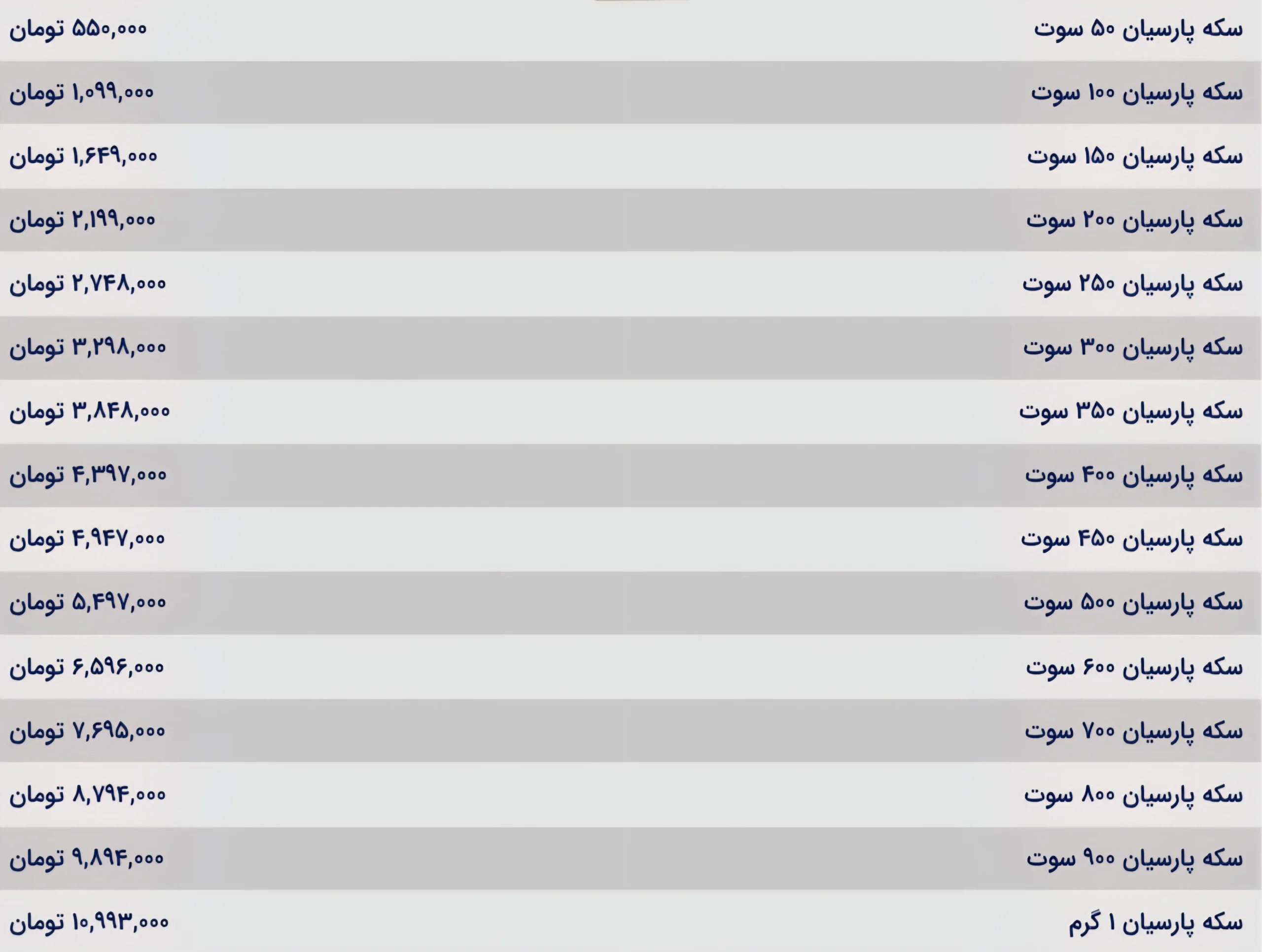 قیمت سکه پارسیان امروز چهارشنبه ۲۳ مهر ۱۴۰۴