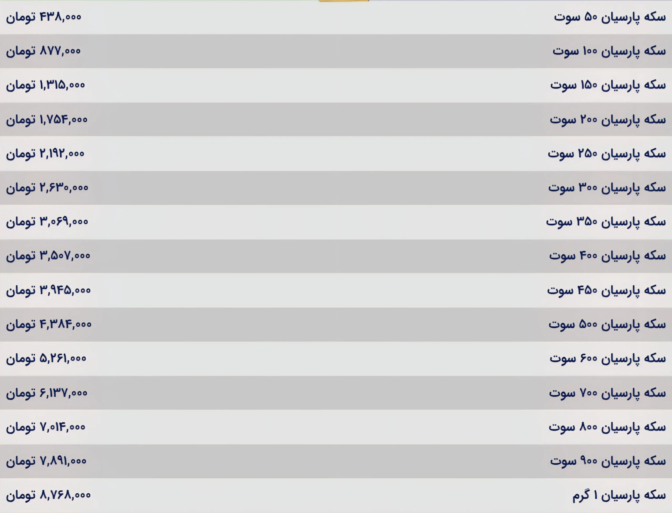 قیمت سکه پارسیان امروز یکشنبه ۱۶ شهریور ۱۴۰۴