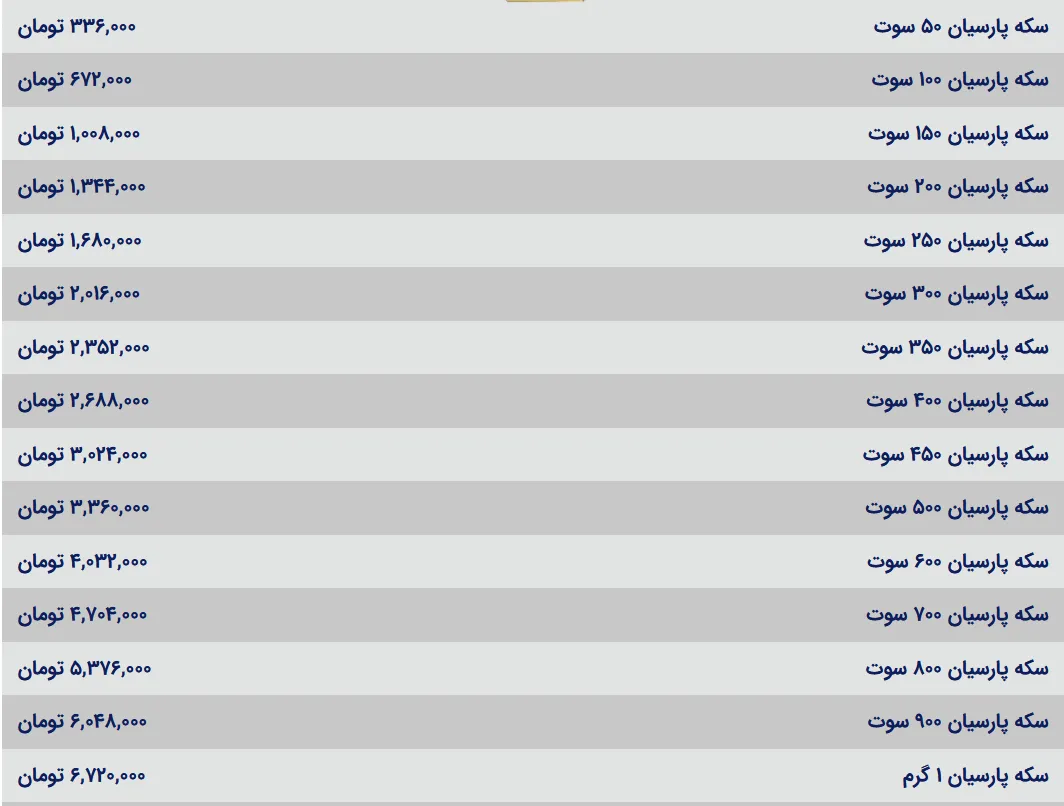 قیمت سکه پارسیان امروز یکشنبه ۲۱ اردیبهشت ۱۴۰۴ – افق میهن