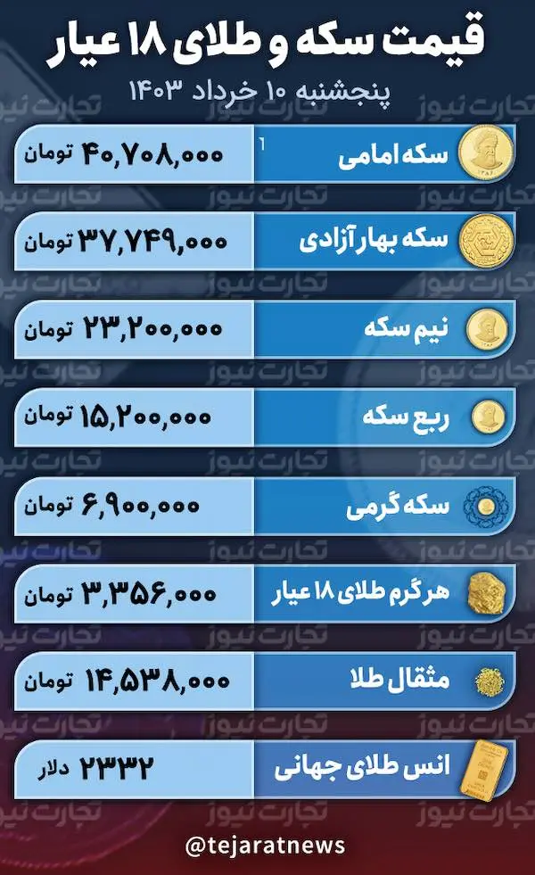 قیمت طلا و سکه امروز 10 خرداد 1403