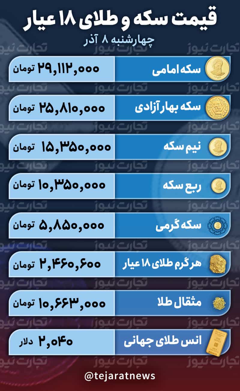 قیمت طلا و سکه امروز 8 آذر ۱۴۰۲ / افزایش قیمت همه قطعات سکه