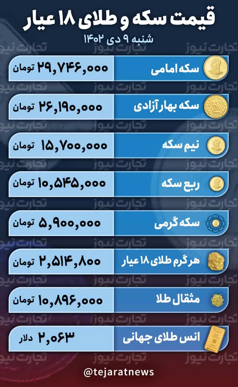 قیمت طلا و سکه امروز 9 دی ۱۴۰۲ / کل بازار افزایشی شد