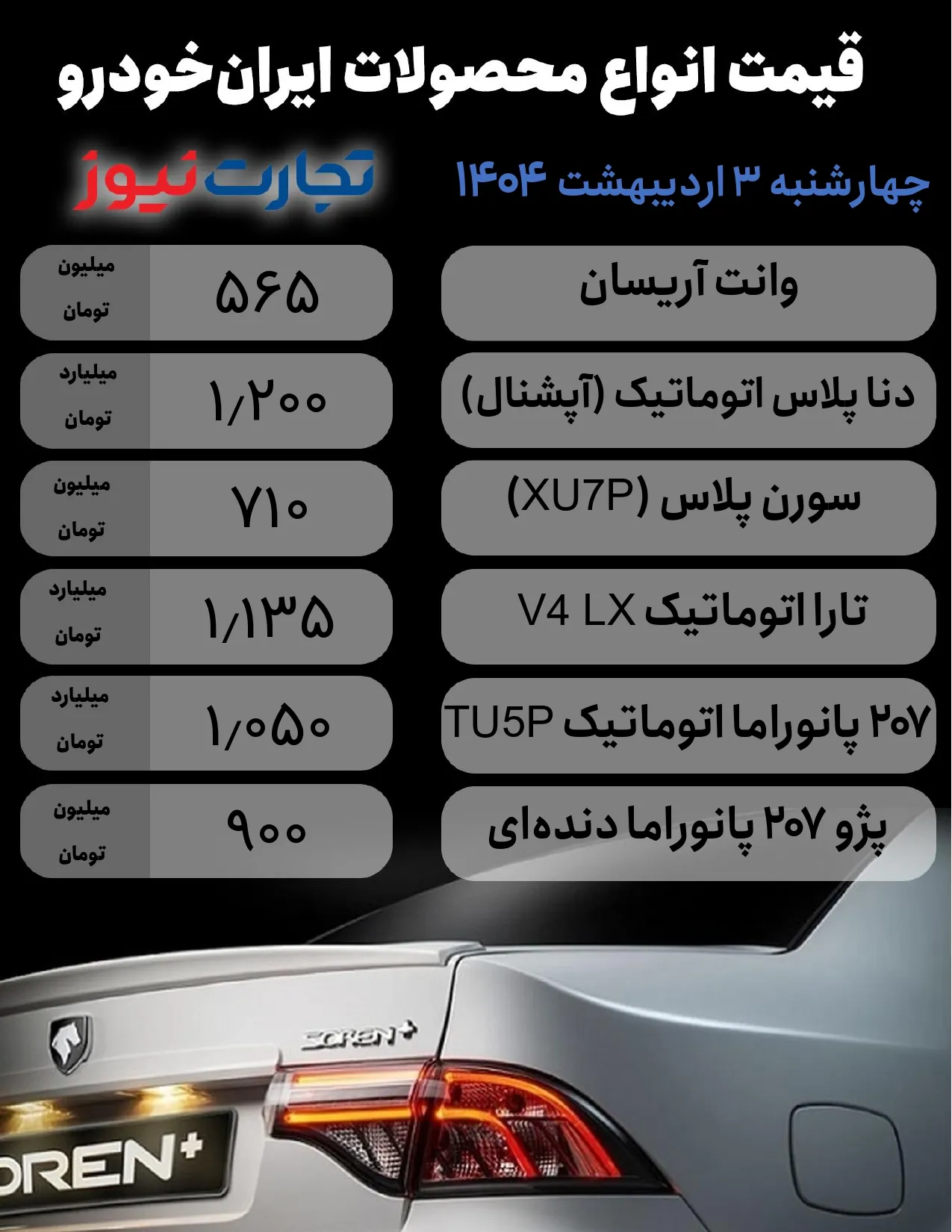 قیمت محصولات ایران خودرو امروز 3 اردیبهشت 1404 / پژو 207 پانوراما به کانال 900 میلیون تومان بازگشت + جدول