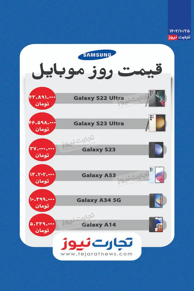 قیمت گوشی های سامسونگ امروز 25 دی 1402