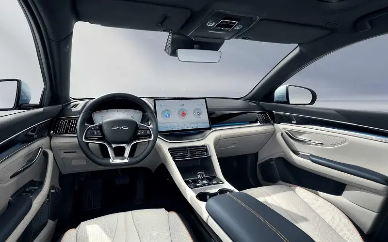 در مرکز داشبورد، یک صفحه نمایش لمسی بزرگ ۱۲.۸ اینچی قرار دارد که به نسل جدید مالتی مدیا BYD مجهز شده است. این نمایشگر با سیستم فرمان صوتی و ۶ بلندگو همراه است. از دیگر ویژگی های فناوری می توان به شارژر بی سیم بسیار قدرتمند ۵۰ واتی برای گوشی های موبایل اشاره کرد.