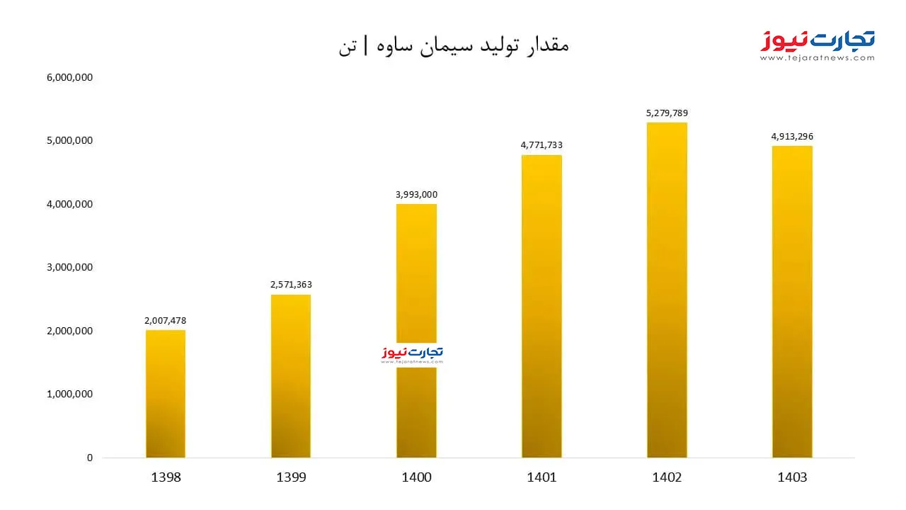 براساس Business News ، شرکت سیمان SAVH در مجموع ۴ میلیون ۹۱۳ هزار و ۲۹۶ تن گیاه در سال ۱۴۰۳ تولید کرده است که به ندرت با مشکلاتی مانند انرژی و هزینه کاهش می یابد.