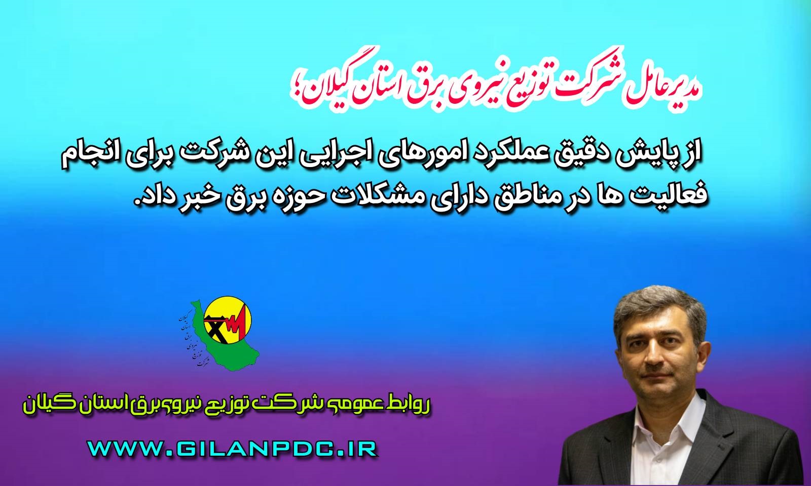 افق میهن، مسعود صادقی خمامی، مدیرعامل توزیع نیروی برق گیلان از نظارت دقیق بر امور اجرایی این شرکت برای انجام فعالیت در مناطق دارای مشکل در حوزه برق خبر داد.