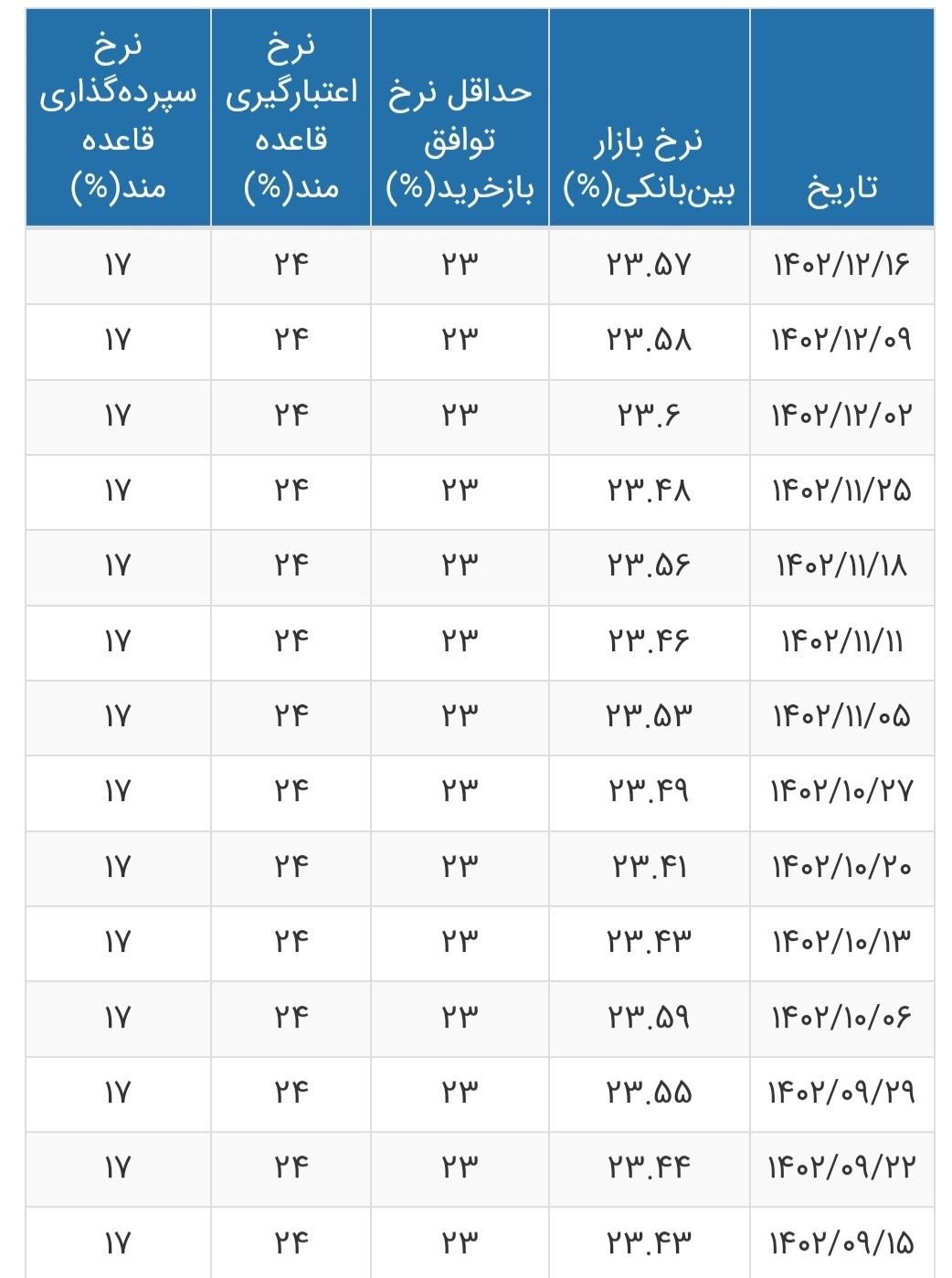 نرخ بهره بین بانکی به ۲۳.۵۷ درصد رسید