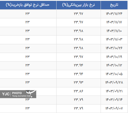 به گفته بانک مرکزی ، وزن وزنی نرخ بهره بین بانکی در هفته قبل در مقایسه با هفته قبل بدون تغییر باقی مانده است. به طوری که تا ۱ در هفته بهمن ماه نرخ بهره بین بانکی در ارتفاع ۴.۹ درصد باقی مانده است.