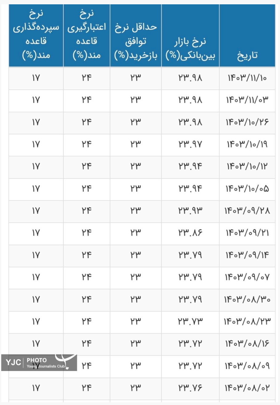 نرخ بهره بین بانکی در ارتفاع ۲۳.۹۸ درصد ثابت ایستاد