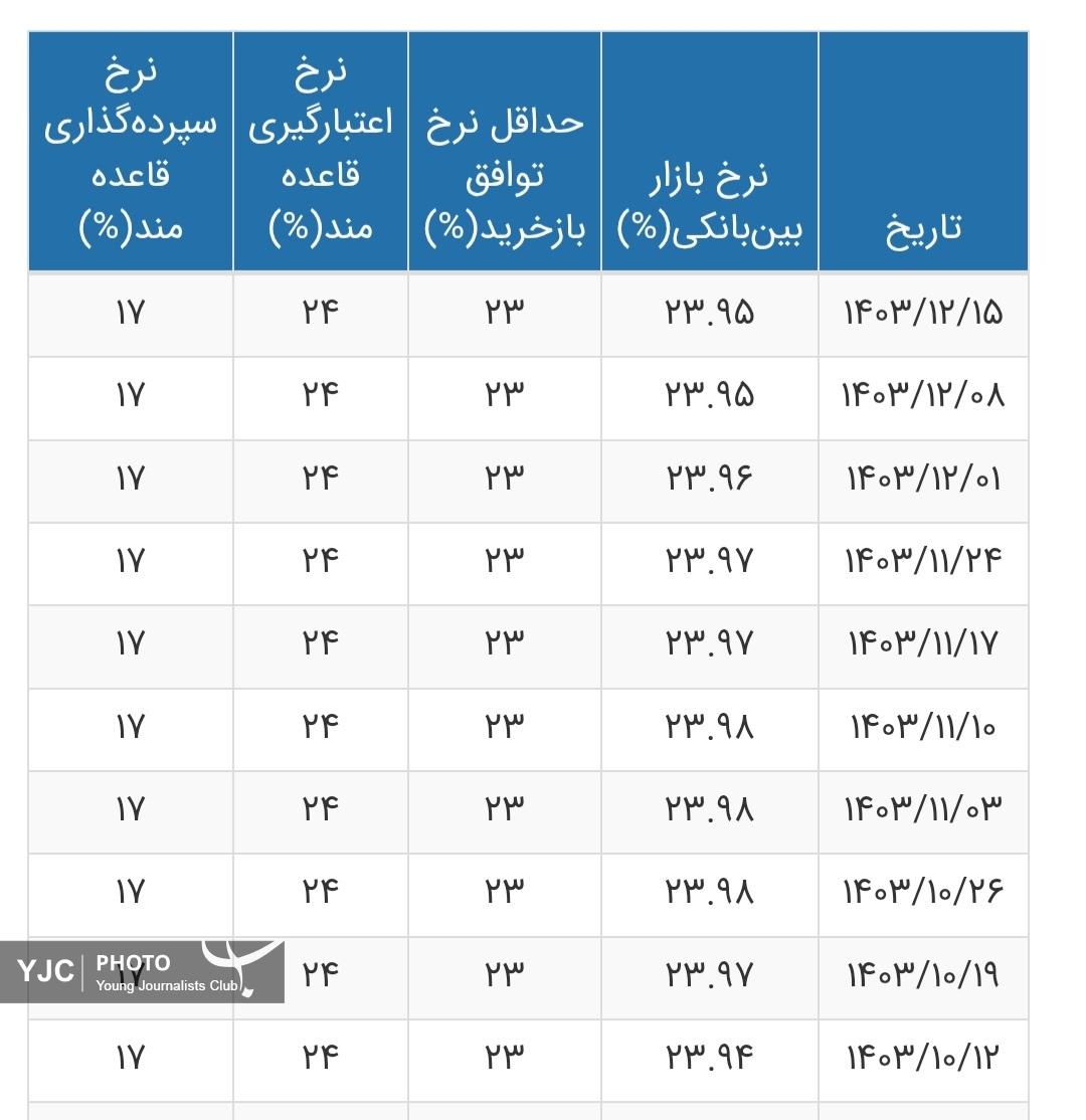 نرخ بهره بین بانکی ۲۳.۹۵ درصد باقی ماند
