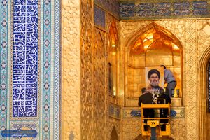 نصب تصاویر رهبران مقاومت در ایوان طلای صحن آزادی حرم مطهر رضوی