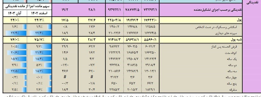 نقدینگی در رابطه با اسفند ماه ۱۴۰۲ ۱۹.۲ درصد رشد کرد.