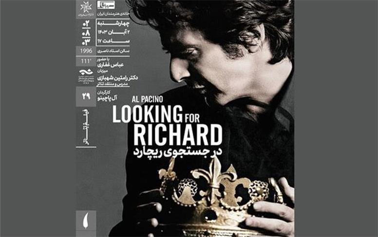 بیست و نهمین برنامه از سلسله نمایش های سینمایی تئاترهای مطرح با همکاری انجمن منتقدان، نویسندگان و پژوهشگران خانه تئاتر و سینماتک خانه هنرمندان ایران به نمایش فیلم تئاتر «در جستجوی ریچارد» و این فیلم چهارشنبه ۲ اکران می شود آبان ۱۴۰۳ ساعت ۱۷:۰۰ در خانه سینماتک هنرمندان ایران اکران می شود.