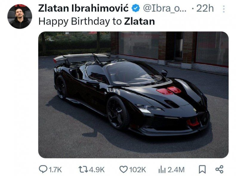 ابراهیموویچ که علاقه زیادی به ماشین های معروف دارد، نمی توانست برای خودش هدیه ای بهتر از یک ماشین لوکس جدید بخرد.