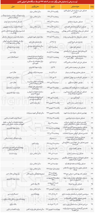 بررسی های «فهریختگان» از اخبار برگزاری همایش های دستگاه های دولتی در سایت پایگاه اطلاع رسانی دولت (dolat.ir) نشان می دهد که امسال تا آذرماه بیش از ۵۲ همایش دولتی در کشور برگزار شده است.