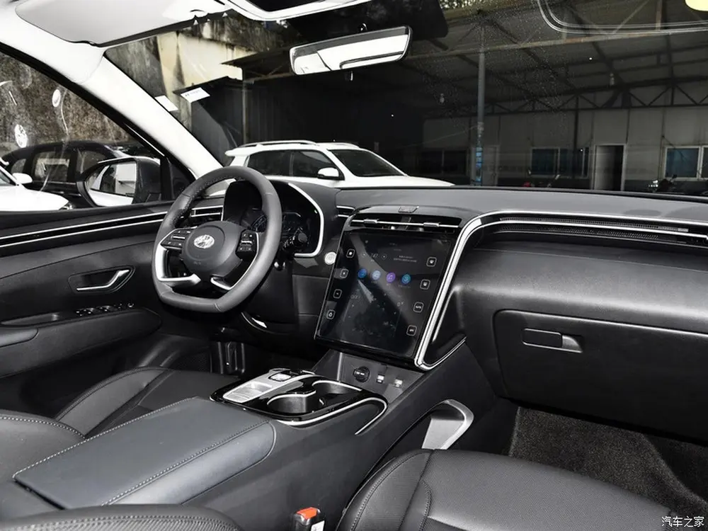 وقتی وارد فضای داخلی هیوندای توسان می شویم متوجه می شویم که با خودرویی مدرن و امروزی روبرو هستیم. زبان طراحی به کار رفته از الگوهای زمانه پیروی می کند و در عین سادگی، ظرافت و جزئیات منحصر به فردی دارد. طراحی کلی داشبورد کاملاً صاف و روان است، بنابراین خط افقی قرار گرفته در قسمت بالایی داشبورد تا ردیف صندلی ها امتداد یافته و فضای بزرگ و جاداری را در چشم مسافران ایجاد می کند. فرمان این کراس اوور کره ای مطابق با طراحی محصولات جدید هیوندای تغییر یافته و دارای تریم دو رنگ با ظاهری جذاب است. پشت آمپلی فایر در نمونه در نظر گرفته شده برای بازار ایران نیز آنالوگ است که بسیاری از فن های خوردو آن را دوست دارند.