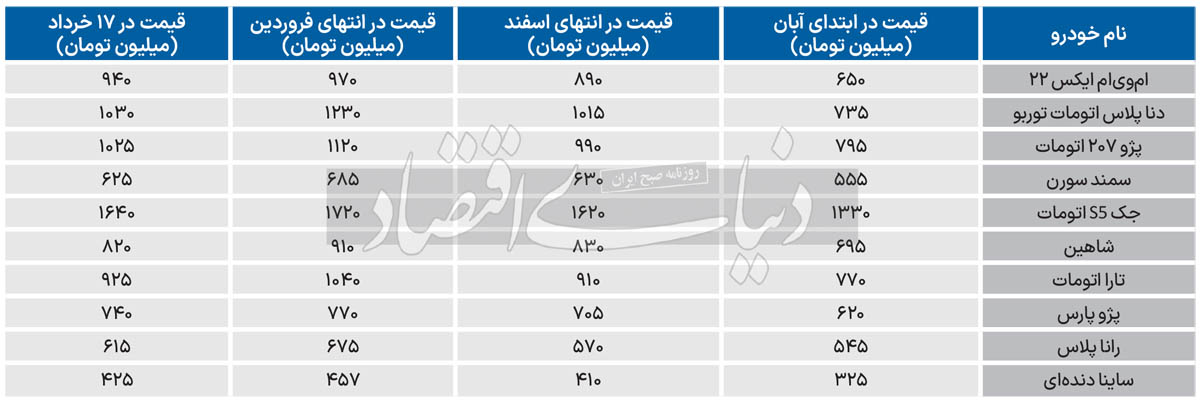 در فاصله آبان ماه سال گذشته تا خرداد امسال این سیاستگذار خودرو در دو کامنت با نوید بهبود بازار خودرو به مردم توصیه کرده است که برای خرید عجله نکنند. اکنون بررسی «دنیای اکوستوت» نشان می دهد که میانگین قیمت خودرو در فاصله زمانی وعده نخست وزیری وی تا شب عید ۲۲ درصد رشد داشته است.